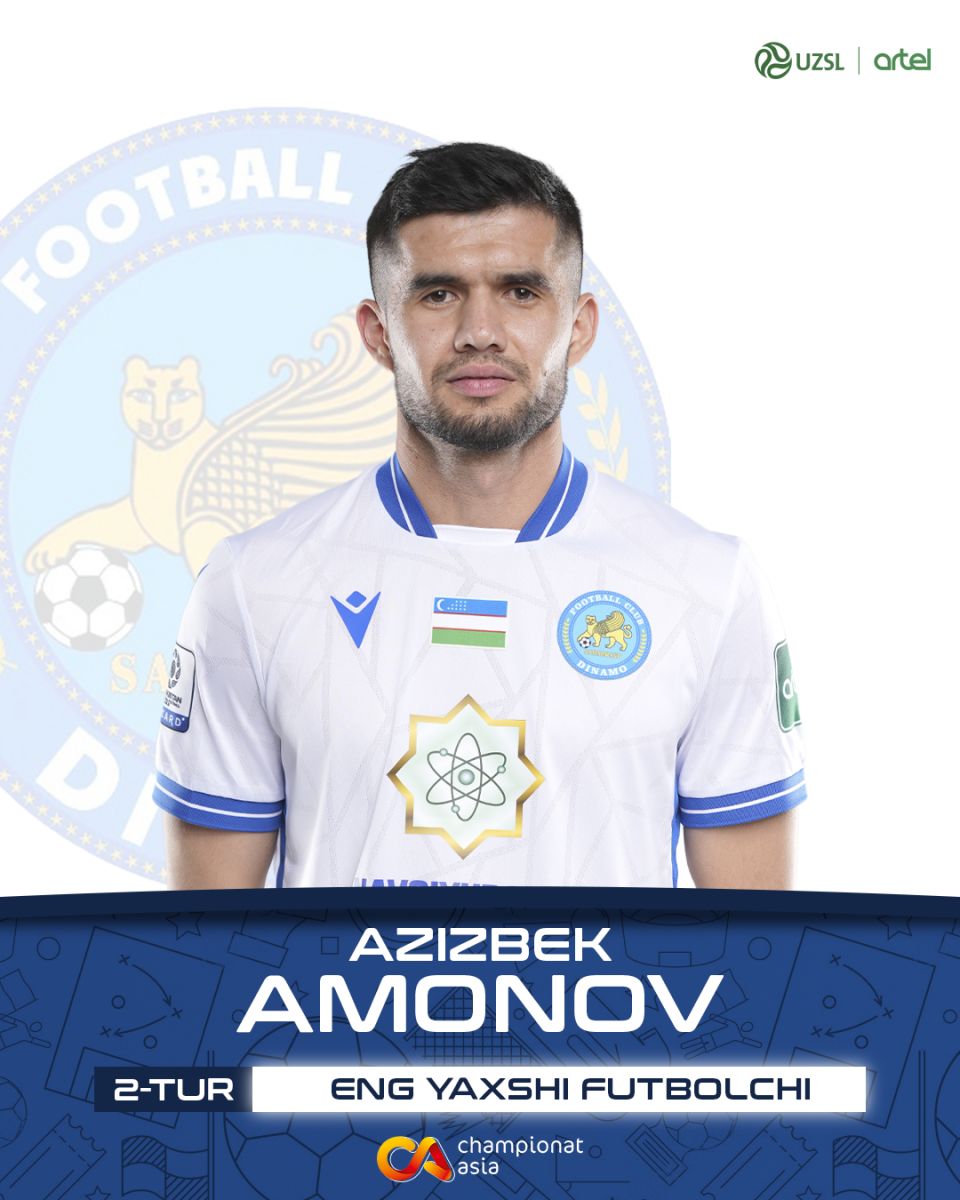 Championat.asia sayti talqiniga ko'ra, 2-turning eng yaxshi futbolchisi – Azizbek Amonov ("Dinamo")