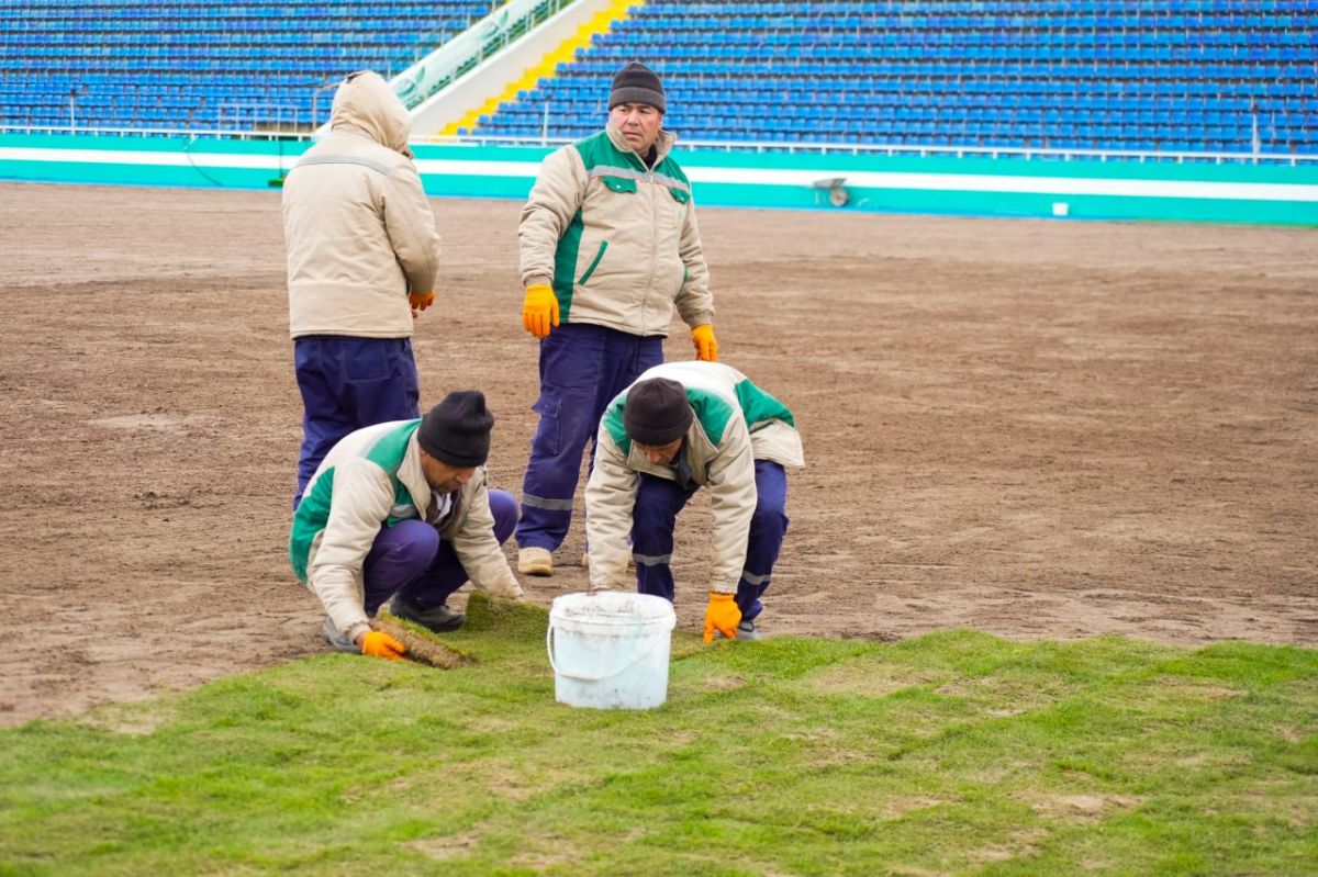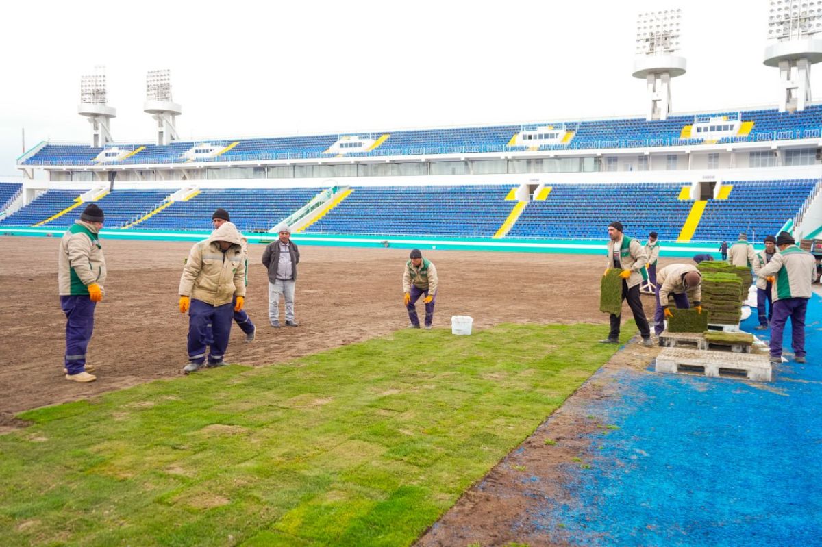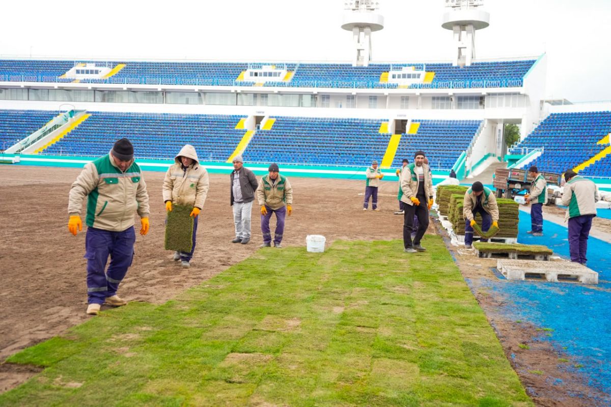 Kuni kecha maydonning asosiy qismi to'liq tayyor holatga keltirilib, stadion uchun maxsus etishtirilgan tabiiy chimni yotqizish ishlari ham boshlandi.