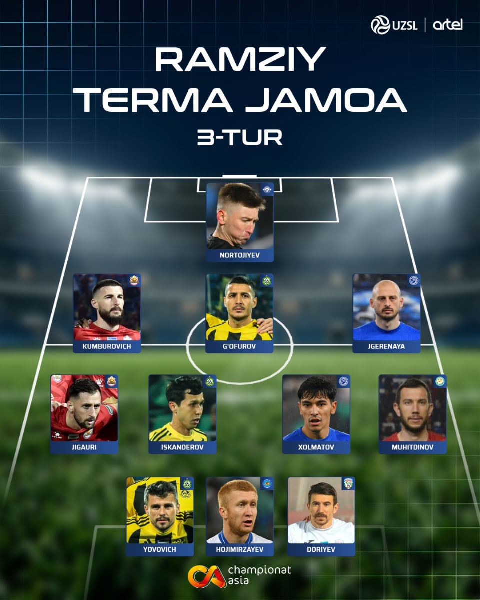 Championat.asia sayti o'z ananasiga muvofiq tur ramziy terma jamoasini tuzib chiqdi.